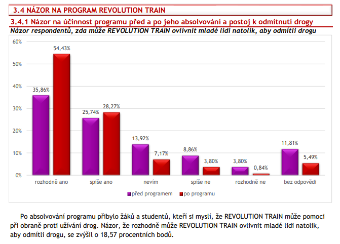 Celkově účastníci hodnotili program Revolution Train výborně v 79,32 procenta. 84,81 procent by jej doporučilo svým kamarádům nebo známým.