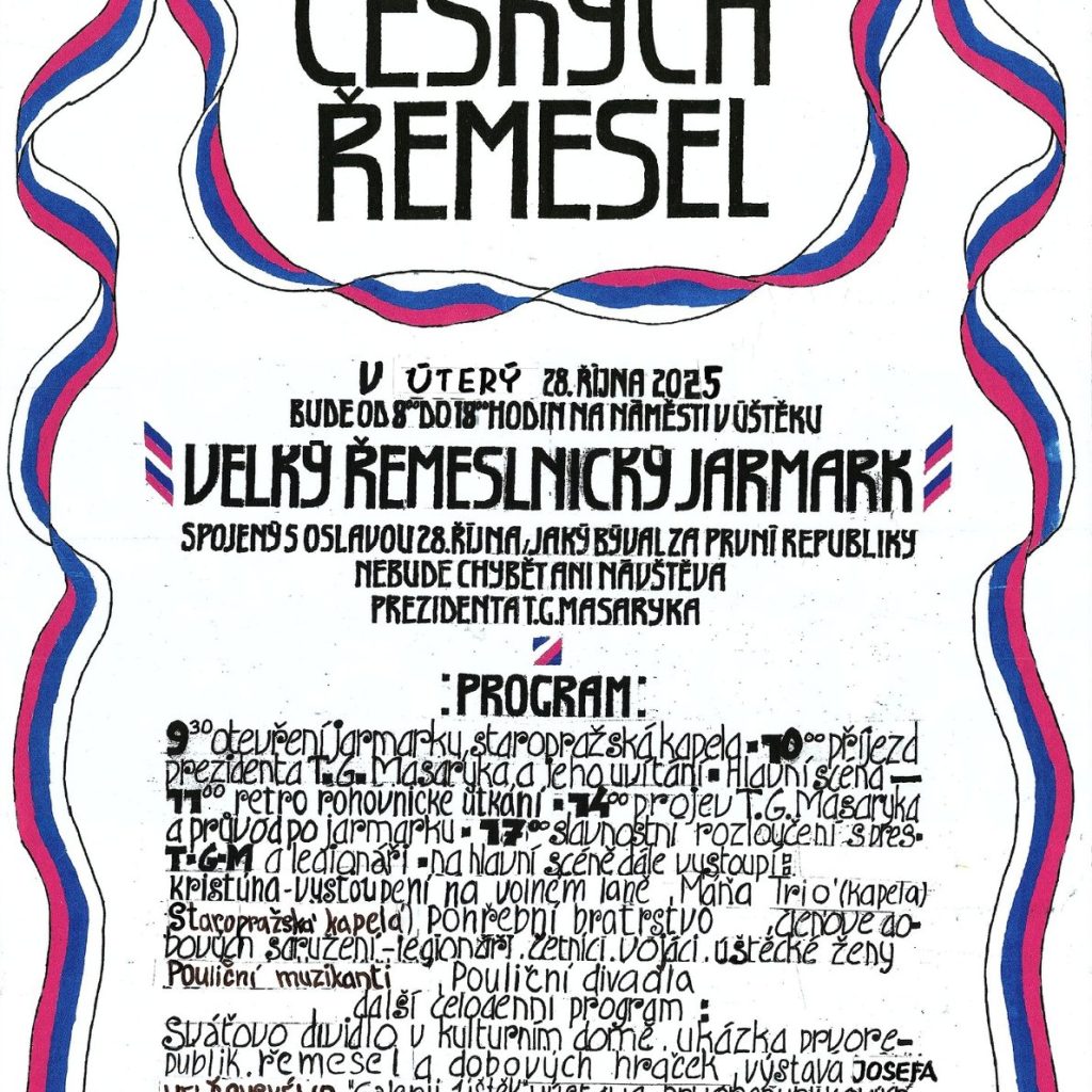 Úštěk – Do centra Úštěka se po roce vrací Den českých řemesel s T.G. Masarykem! Buďte u toho a přijďte v úterý 28. října pozdravit prvního československého prezidenta! Jarmark s bohatým kulturním programem ve stylu první republiky začíná už v 9 hodin ráno a potrvá až do večera!