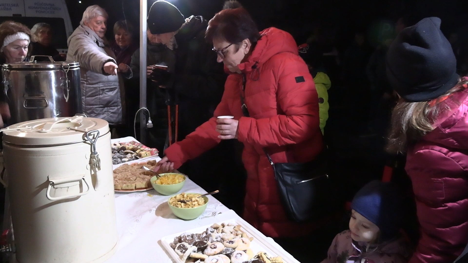 Slavnostní rozsvícené stromečku doprovázela milá sousedská atmosféra a také zpěv koled v podání místního sboru Koťata. Návštěvníci mohli ochutnat svařené víno, či čaj a také domácí cukroví, které připravil místní klub seniorů.