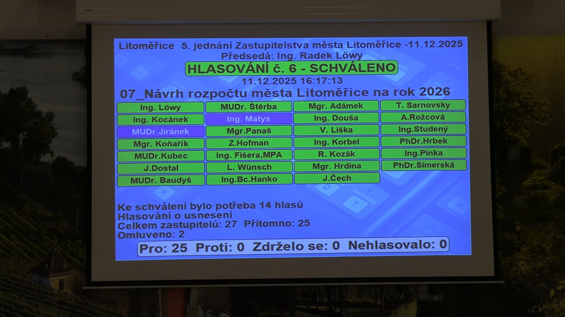DomůMěsta/obceLitoměřickoLitoměřičtí zastupitelé schválili jednomyslně rozpočet na příští rok