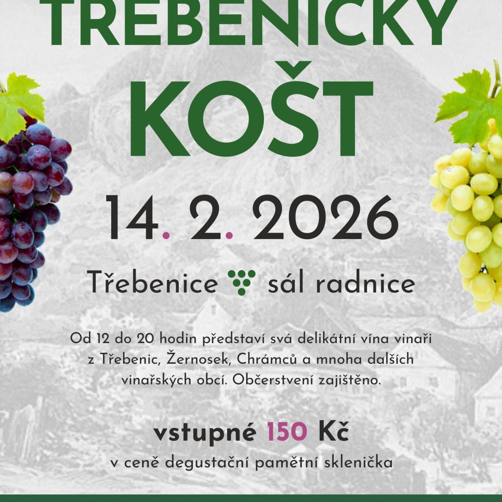 Třebenice – Na pátém ročníku Třebenického koštu v sobotu 14. února návštěvníci poznají nové vinaře. Organizátoři do sálu radnice v Třebenicích, kde se akce koná, pozvali například nové vinařství Na Lišce z Teplic, nebo České vinařství Chrámce, které v Třebenicích svá vína ještě nevystavovalo.