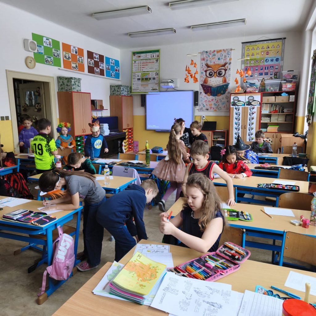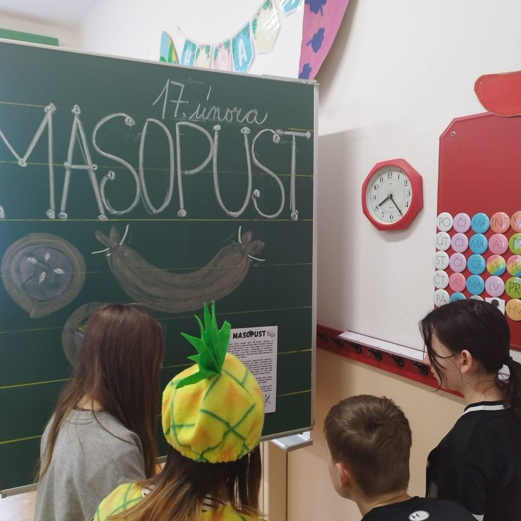 V některých třídách počítali jitrnice a papírové koláče, zatímco v jiných si pochutnali na opravdových – domácích – koblihách. Soutěžilo se, tančilo a zpívalo a nechyběly ani masky a kostýmy. Masopustem zkrátka žila celá škola a všechny nesmírně bavil.