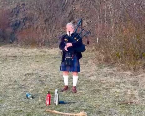 Atmosféra na vrcholu byla už od soumraku jedinečná. Postaral se o ni mimo jiné dudák Vlasta Štembera, jehož hudba se nesla nad krajinou Českého středohoří a dodala celému setkání autentický, téměř rituální nádech.
