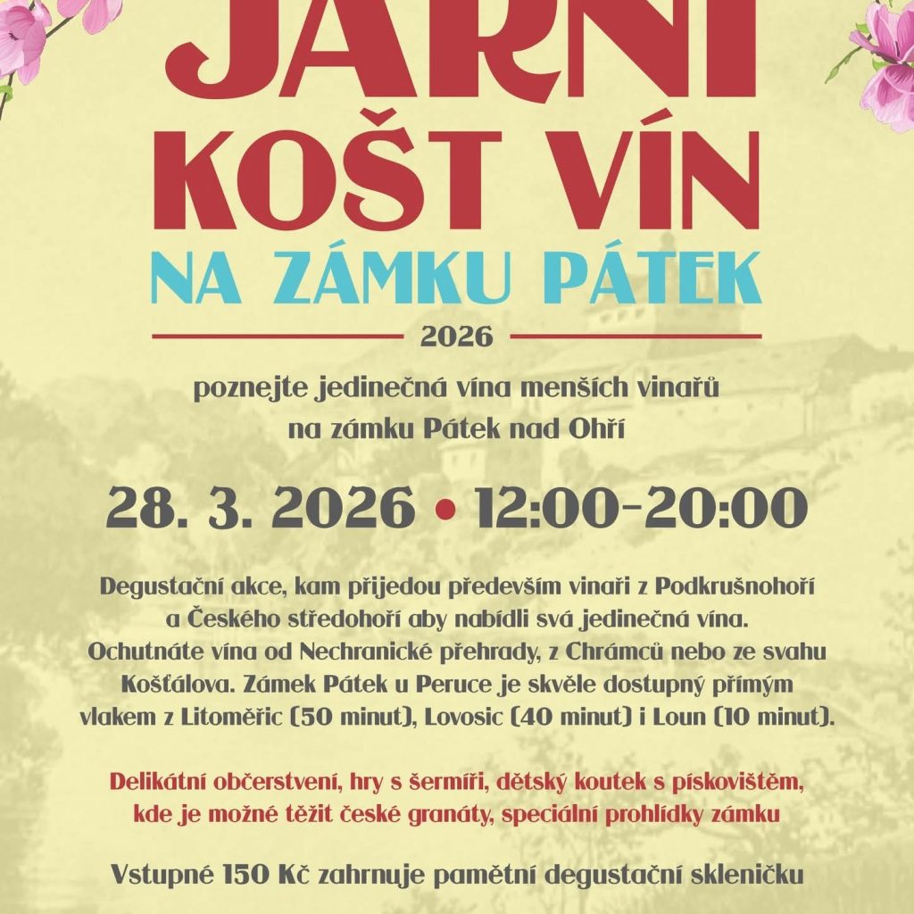 Litoměřicko – Další ročník oblíbeného Jarního koštu vín na zámku Pátek se uskuteční už tuto sobotu 28. března. Tentokrát vínomilci najdou vinaře v historickém objektu zámecké sýpky.