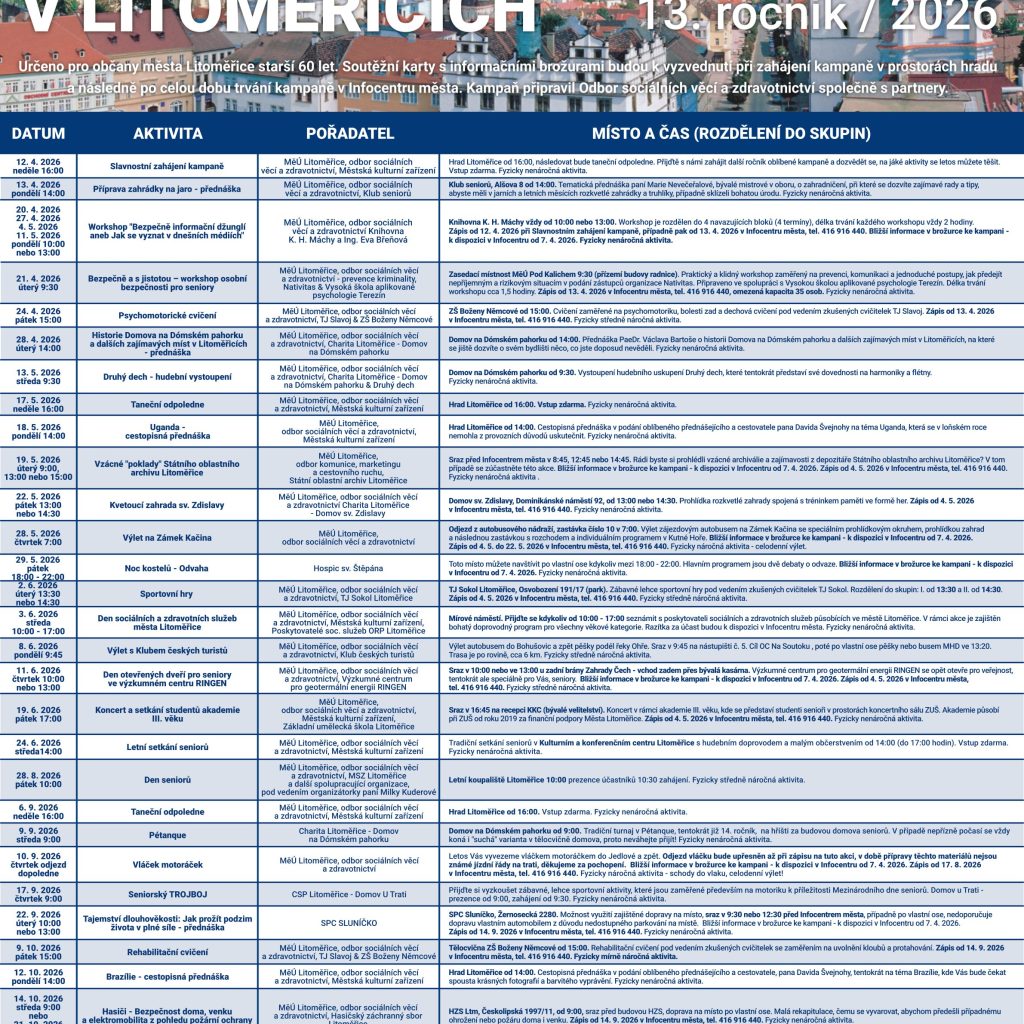 Litoměřice – Třináctý ročník oblíbené kampaně Místa přátelská seniorům slibuje opět bohatý a pestrý program. Na své si přijdou milovníci výletů, aktivního odpočinku, vzdělávání i ti, kteří rádi objevují zajímavá místa.