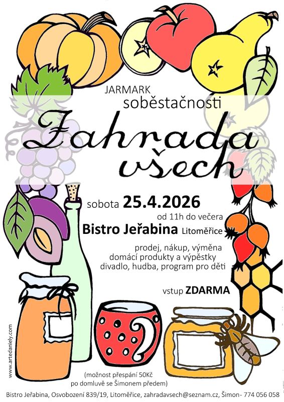 LITOMĚŘICE – Máte přebytky ze zahrádky, vyrábíte domácí marmelády, nebo vás prostě jen zajímá, jak žít více v souladu s přírodou? Pak si v kalendáři červeně zakroužkujte sobotu 25. dubna. V litoměřickém Bistru Jeřabina se totiž uskuteční tradiční akce s názvem „Zahrada všech“, která propojí trh, kulturu a komunitní život.