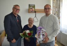 Úctyhodný věk 95 let oslavila v Domově pro seniory Krásné Březno paní Marie Jirků. Přání a drobné dary jí předalo vedení města.